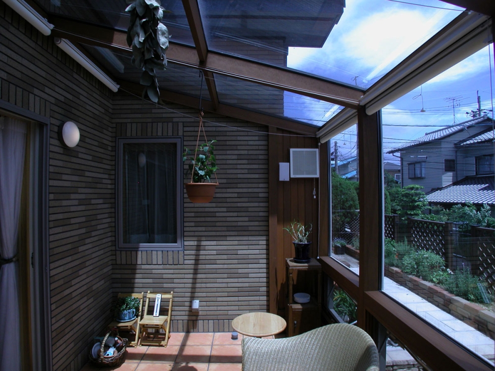 サンルームは「陽が当たる部屋」という意味ですね、かなり昔になりますが木製窓とガラス、レッドシーダーの無垢材を組み合わせたサンルームを作ったことがあります。暑さ対策としてすべてペアガラスを使い、サンシェードを天井と窓に付け、排気のための換気扇を付けました。ですがガラスの屋根からの日射熱侵入は圧倒的です。結果、雨の日にガラスを流れる水滴を楽しんで読書をする部屋となりました。