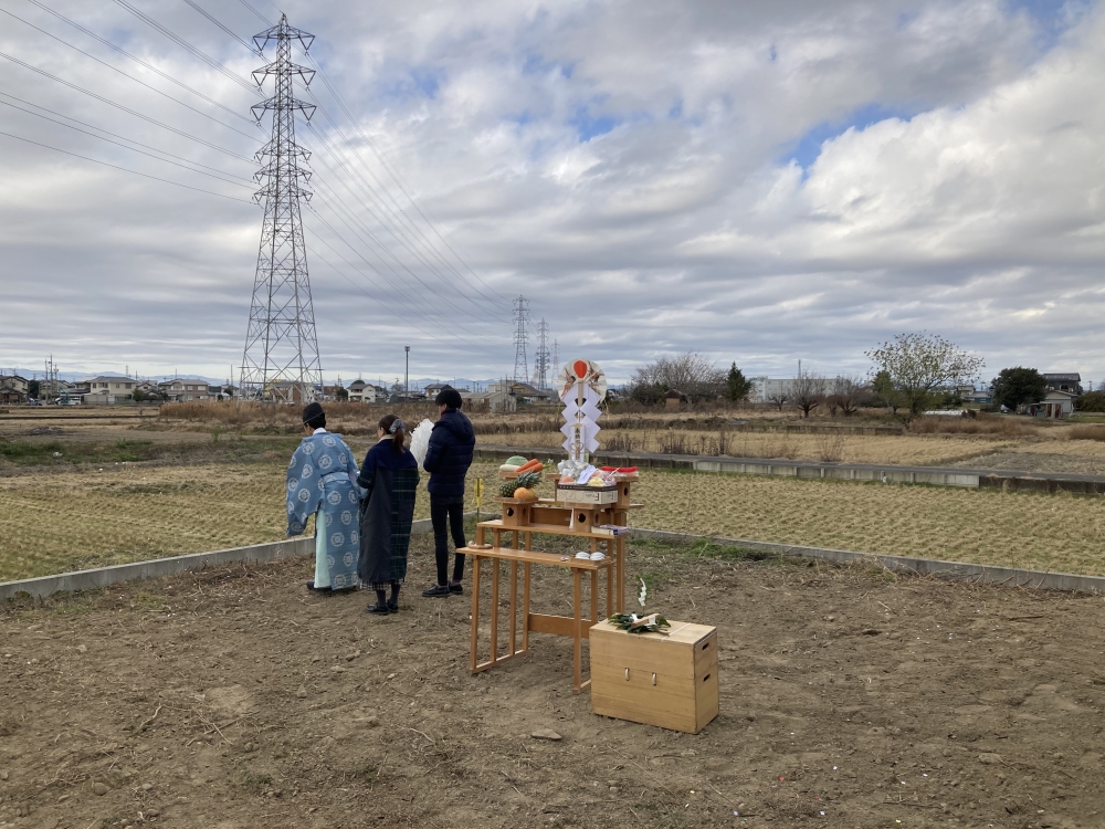 来年着工予定の新築物件の地鎮祭を行いました。前日は風も強くとても寒かったのですが、当日は風もなく少し肌寒い程度のちょうど良い気候でした。無事土地の清め払いもすみましたので、細心の注意を払いながら工事の方進めていきます。