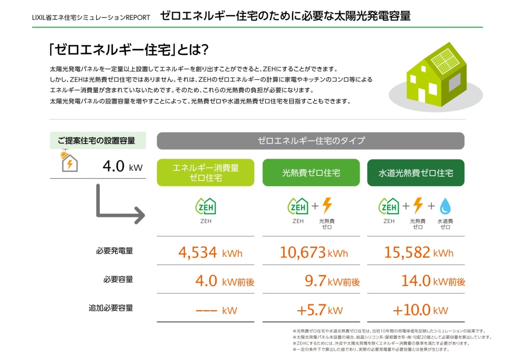 新築を考えたことがある方は、ゼッチ住宅またはZEH住宅という言葉を聞いたことがあると思います。ゼッチとはエネルギー消費量ゼロ住宅のことです。リノベ案では4kWの太陽光発電を乗せる提案です。その場合、この家はゼッチ住宅となります。さらに9.7kWの太陽光発電を乗せれば光熱費ゼロとなります。