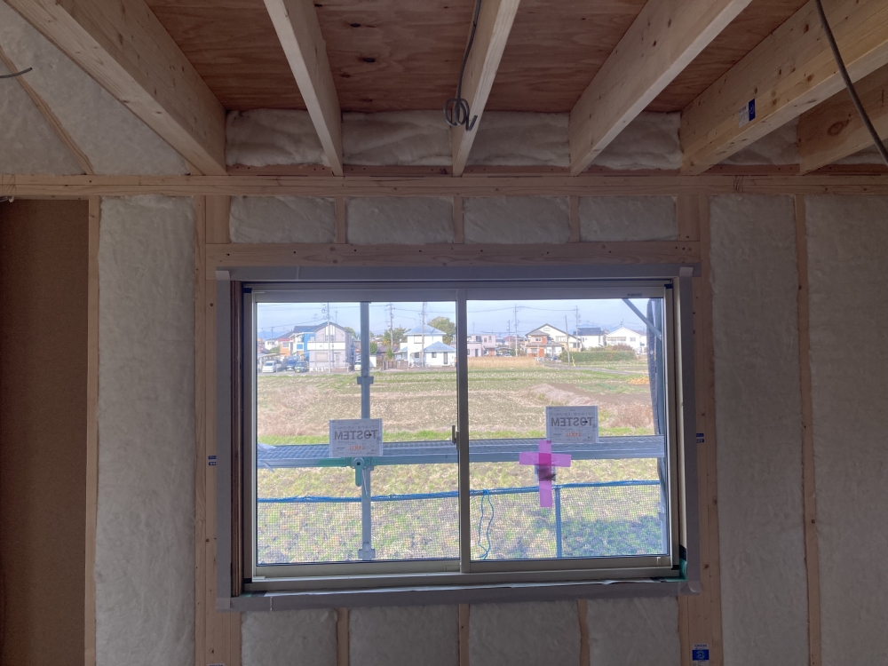 一宮市千秋町の新築現場の断熱工事の様子です。