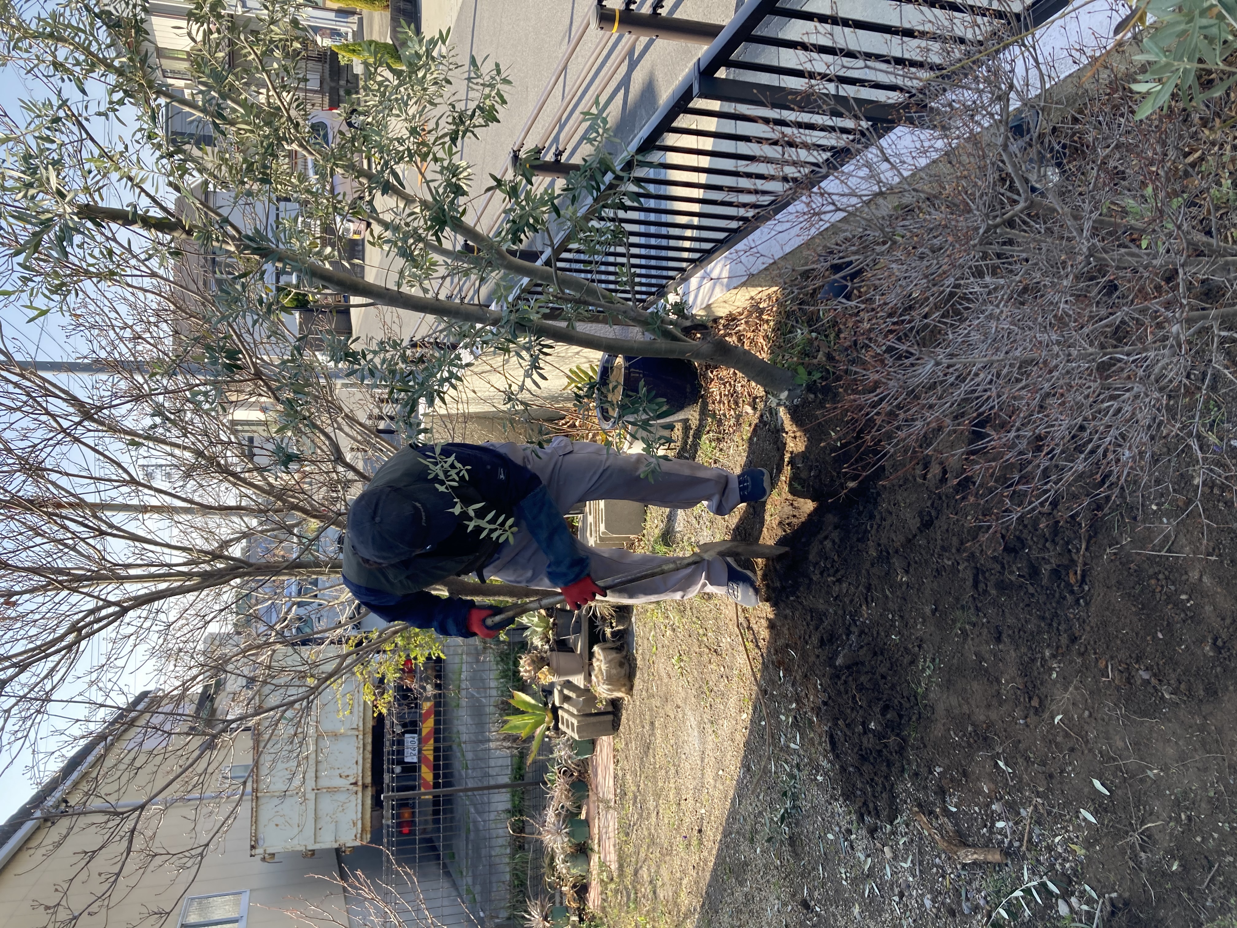 植える予定のオリーブの木が想像以上に育ってしまい、鉢植えできるか心配でしたが無事に終えることができました。
