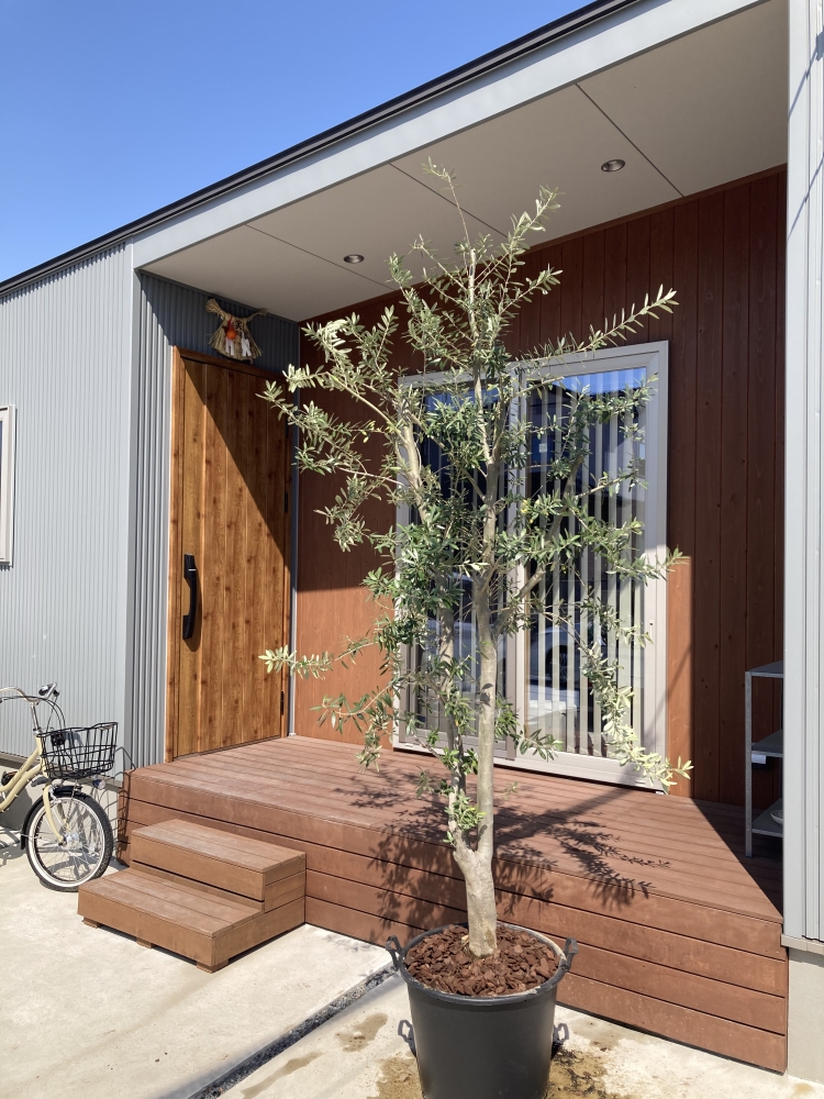 ちょうど道路からの目線が気になるとのことだったので、鉢植えしたオリーブを置いたところちょうど目隠しにすることができたのでよかったです。